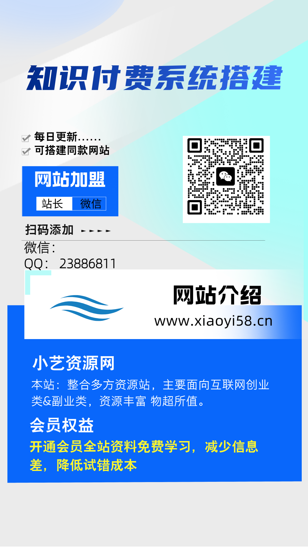 加盟XXX网创,加盟搭建同款知识付费资源网站,实现长期稳定被动收入~